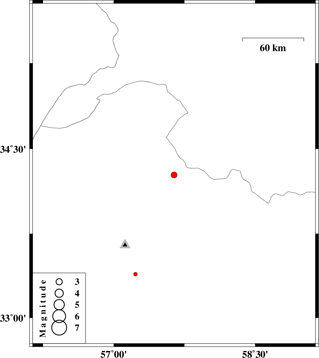 | 2014/08/05 | 22:10:04.8 | 02:40:04.8 | 34.27 | 57.64 | 30 | ML:2.9 | Khorasan(center) Province, 58 km North-West of Ferdows | ||