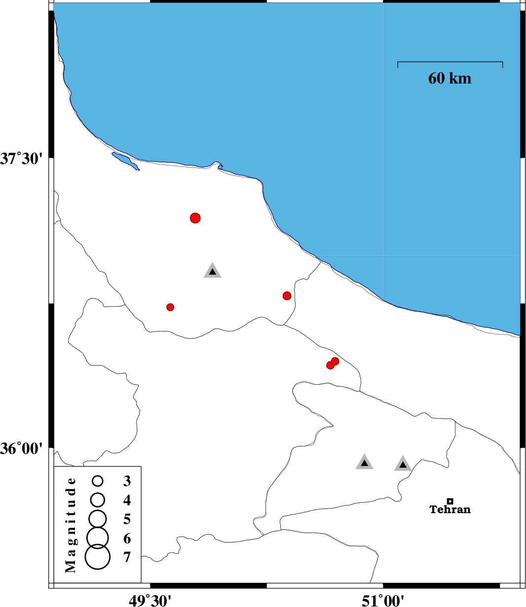 | 2014/07/20 | 08:45:59.7 | 13:15:59.7 | 37.19 | 49.79 | 14 | ML:3 | Gilan Province, 10 km Kuchesfehan |