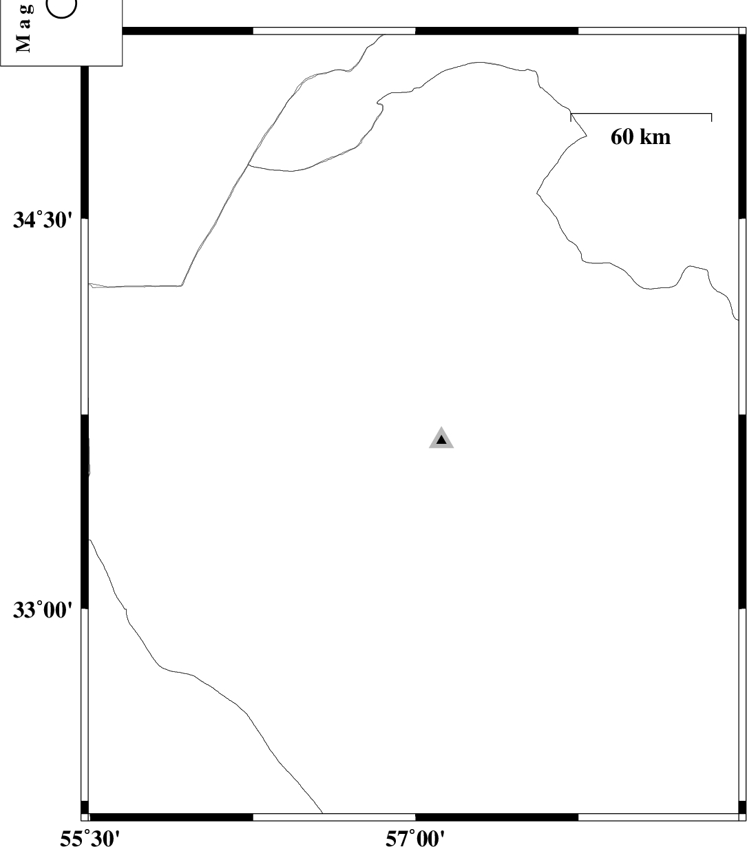 | 2014/08/18 | 23:29:44.2 | 03:59:44.2 | 32.22 | 57.7 | 14 | ML:3 | Yazd Province, 135 km North-East of Ravar | ||
