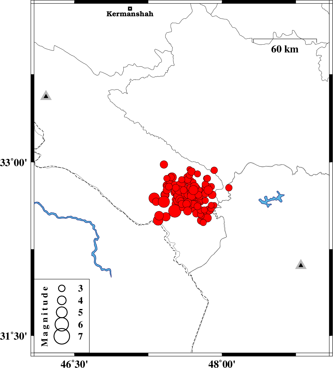 2014/08/18 05:25:51.3 09:55:51.3 32.6947.6114 ML:5.8 Ilam Province, 33 km East of Dehloran