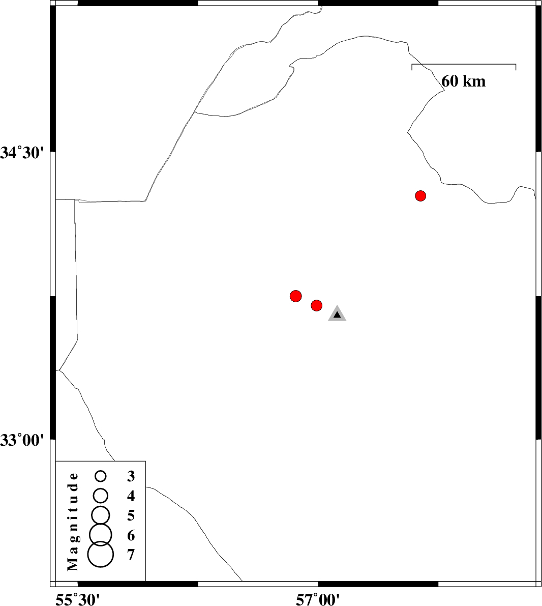 | 2014/08/05 | 22:10:04.8 | 02:40:04.8 | 34.27 | 57.64 | 30 | ML:2.9 | Khorasan(center) Province, 58 km North-West of Ferdows |