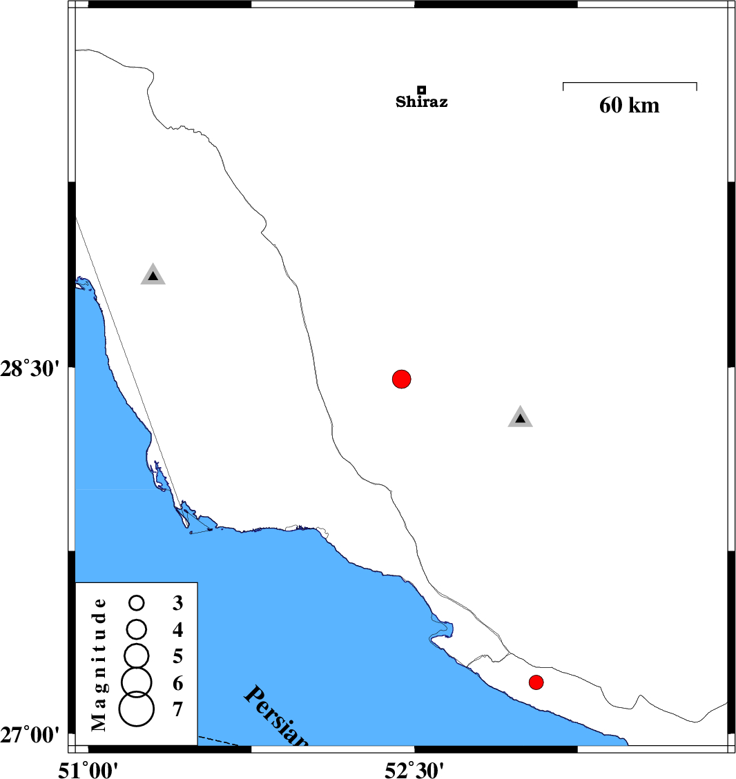| 2014/09/13 | 00:29:12.9 | 04:59:12.9 | 27.21 | 53.06 | 18 | ML:3 | Hormozgan Province, 17 km South-West of Lamerd |