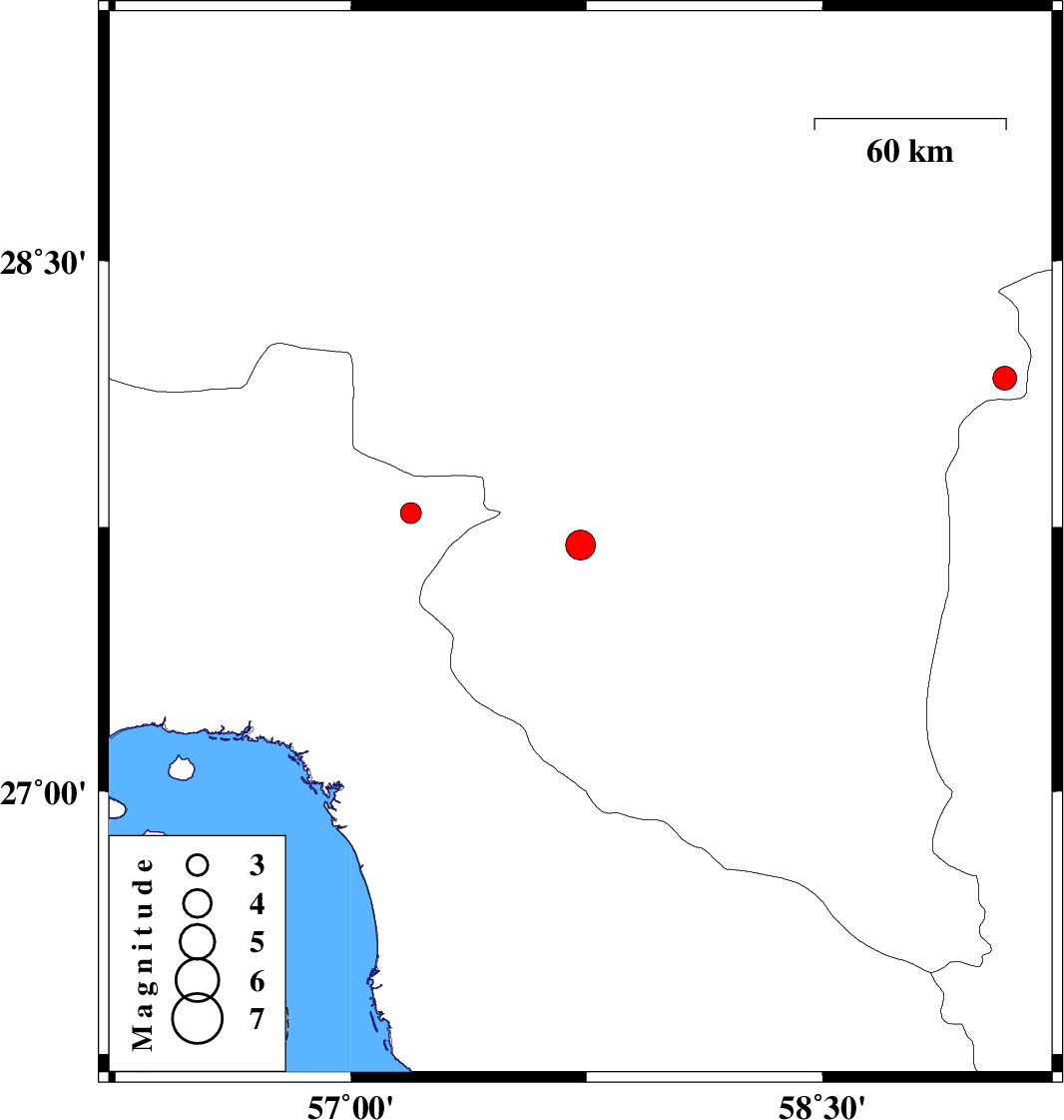 | 2014/09/17 | 12:35:26.5 | 17:05:26.5 | 28.17 | 59.08 | 18 | ML:3.4 | Kerman Province, 138 km North-East of Kahnuj |