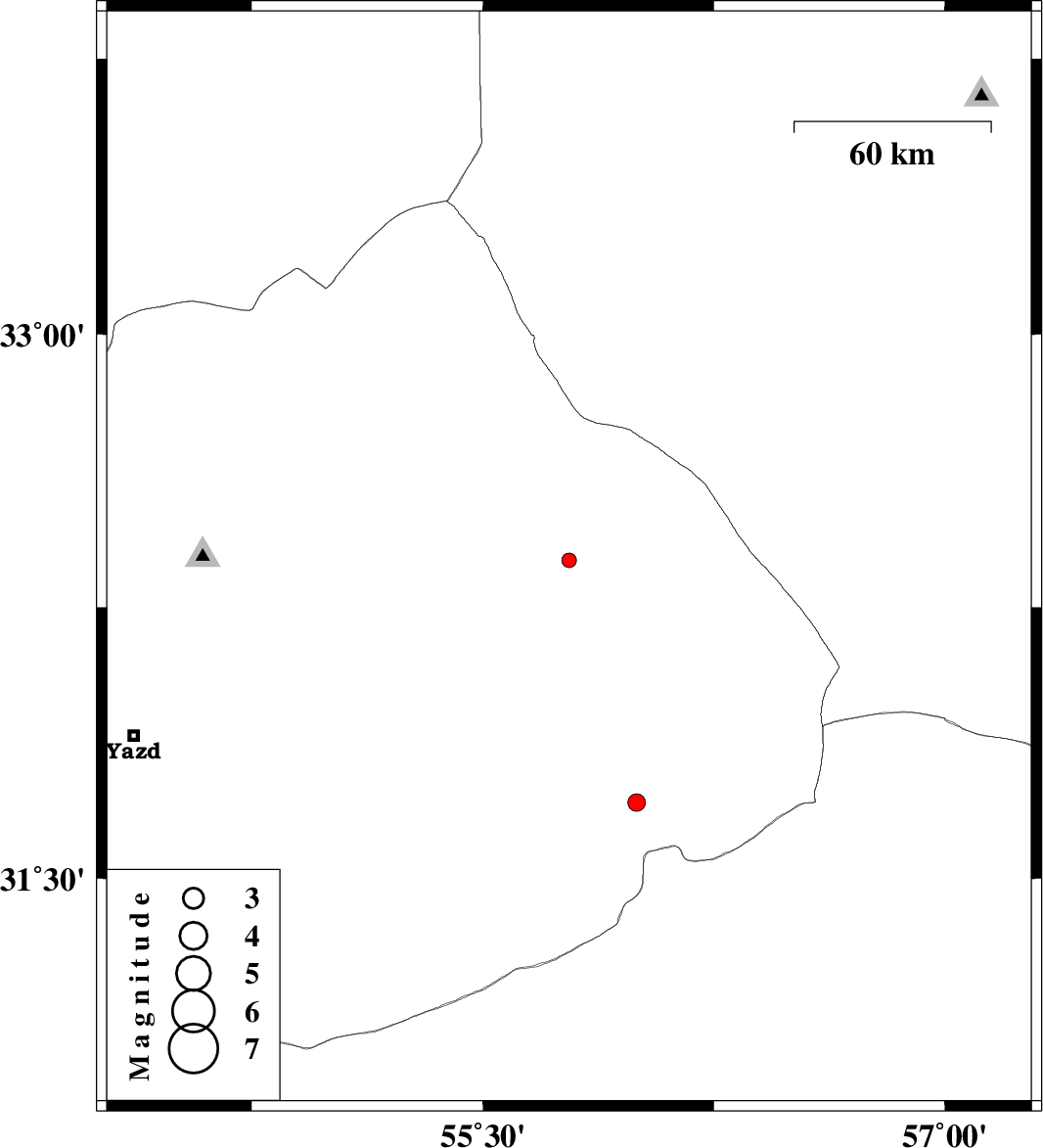 | 2014/10/02 | 14:52:42.4 | 18:22:42.4 | 31.71 | 56 | 40 | ML:2.5 | Yazd Province, 59 km North-East of Bafq |