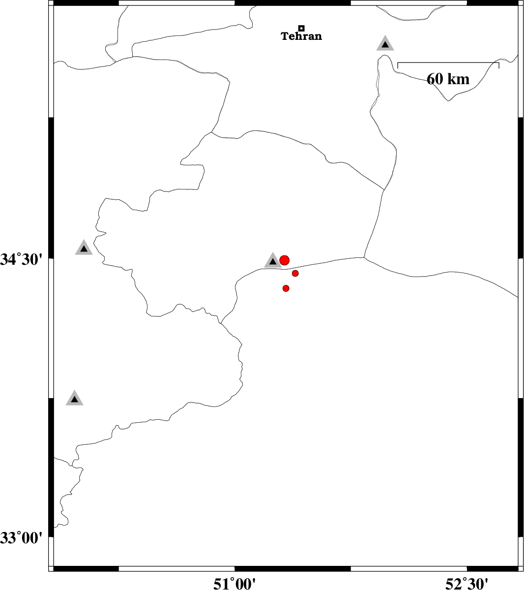 | 2014/10/03 | 15:51:54.1 | 19:21:54.1 | 34.49 | 51.32 | 6 | ML:2.8 | Qom Province, 50 km North-West of Aran va bidgol | ||