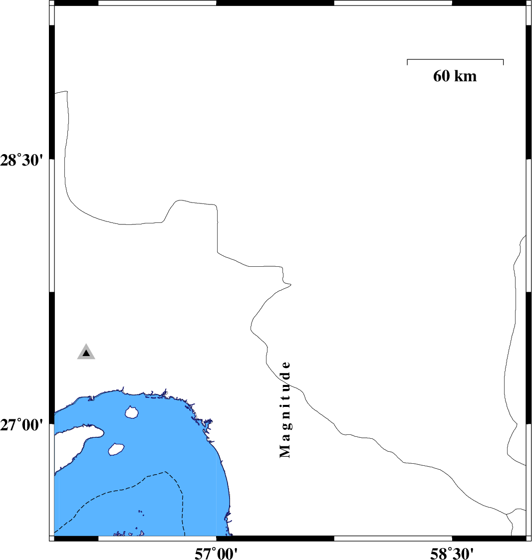 | 2014/10/06 | 22:45:12.7 | 02:15:12.7 | 28.7 | 57.1 | 38 | ML:2.6 | Kerman Province, 63 km West of Jiroft | ||