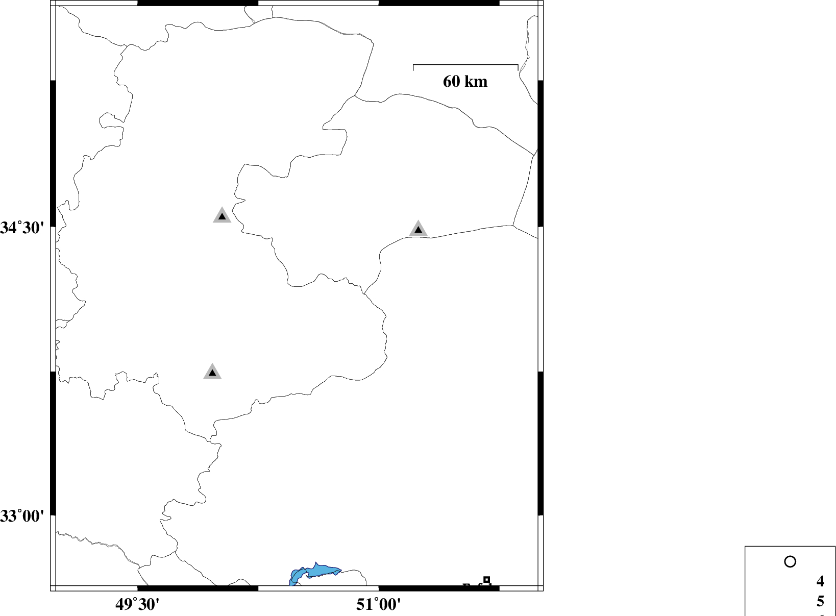 | 2014/10/30 | 10:30:09.3 | 14:00:09.3 | 34.13 | 50.49 | 44 | ML:1.7 | Markazi Province, 24 km North of Mahallat | ||