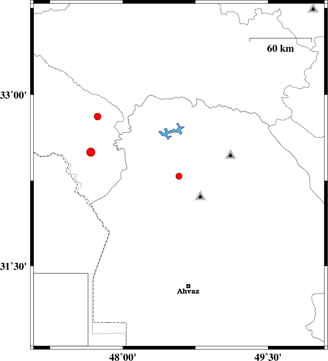 | 2014/11/19 | 21:18:19.6 | 00:48:19.6 | 32.29 | 48.58 | 16 | ML:2.9 | Khoozestan Province, 20 km East of Dezful | ||