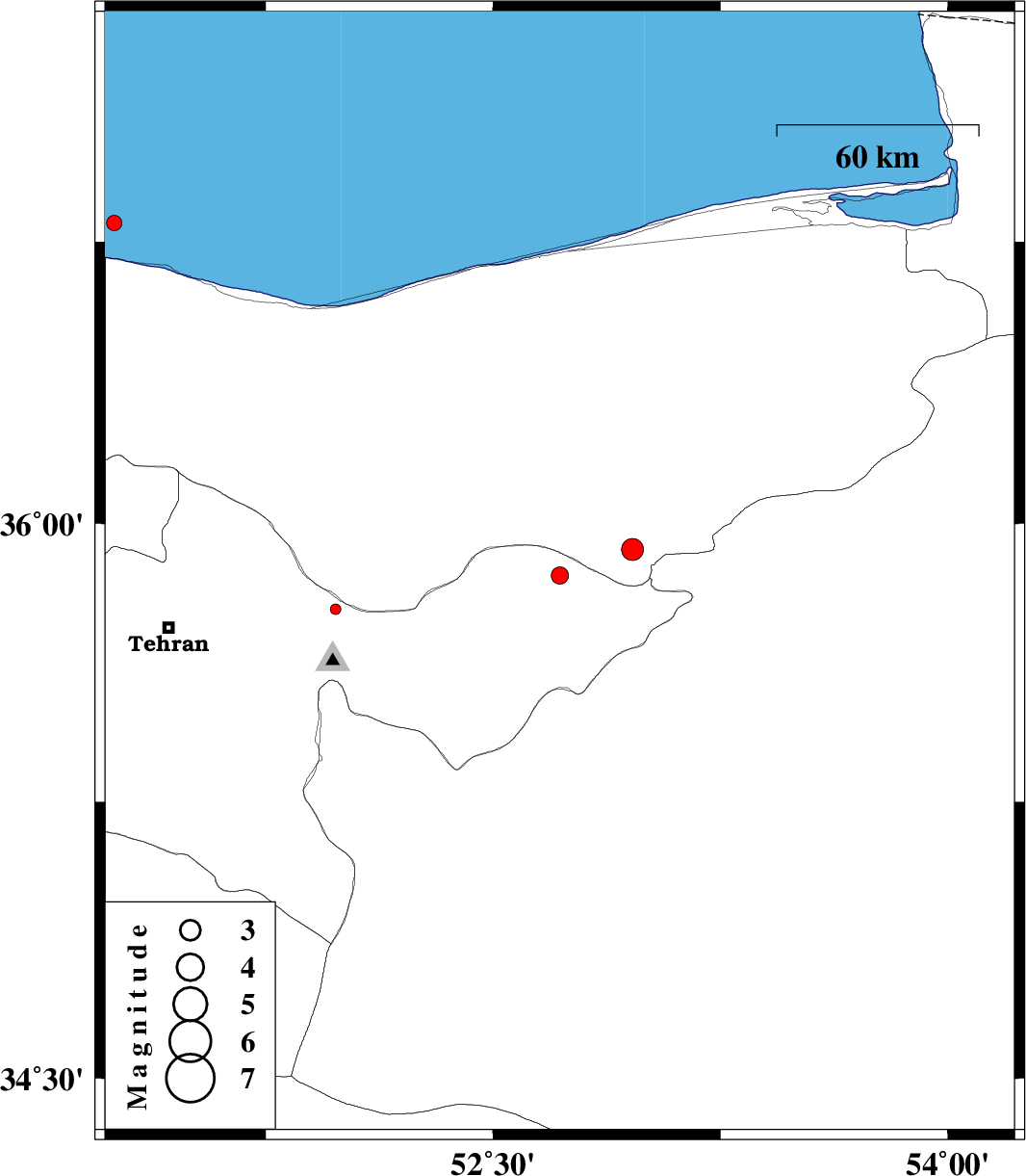 | 2014/11/20 | 02:23:47.1 | 05:53:47.1 | 35.86 | 52.72 | 15 | ML:2.6 | Tehran Province, 13 km North of Firuzkuh | ||