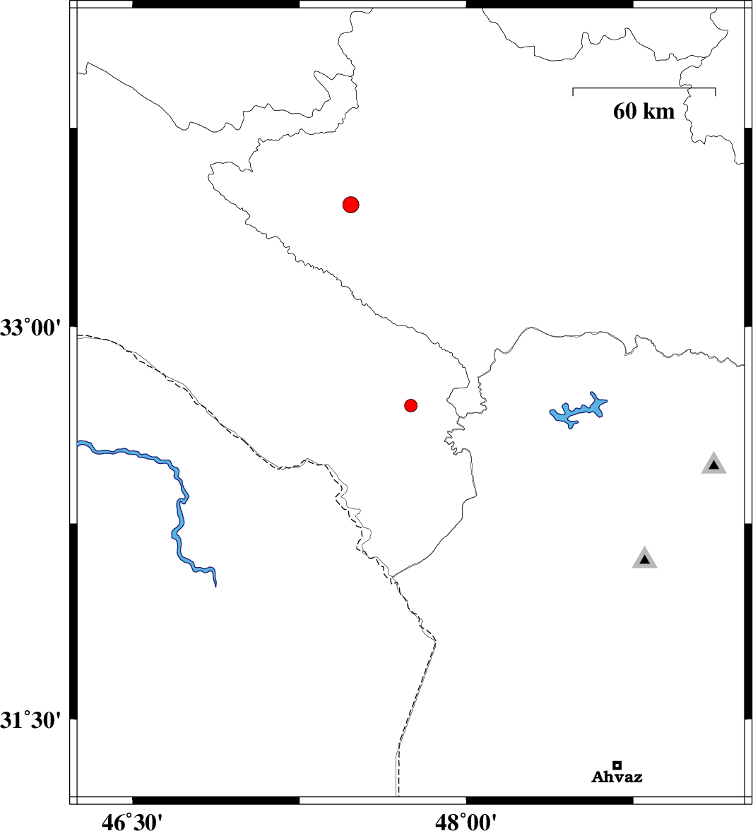 | 2014/12/08 | 21:40:39.2 | 01:10:39.2 | 32.7 | 47.75 | 42 | ML:2.5 | Ilam Province, 50 km South of Pol-e dokhtar | ||