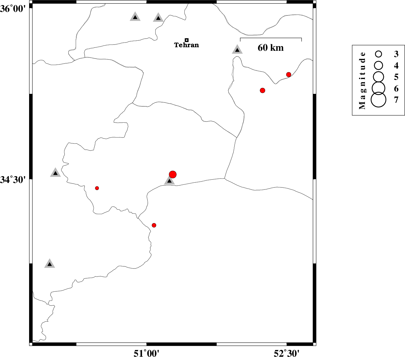 | 2014/12/22 | 23:21:04.6 | 02:51:04.6 | 34.54 | 51.28 | 7 | ML:3.5 | Qom Province, 40 km South-East of Qom | ||