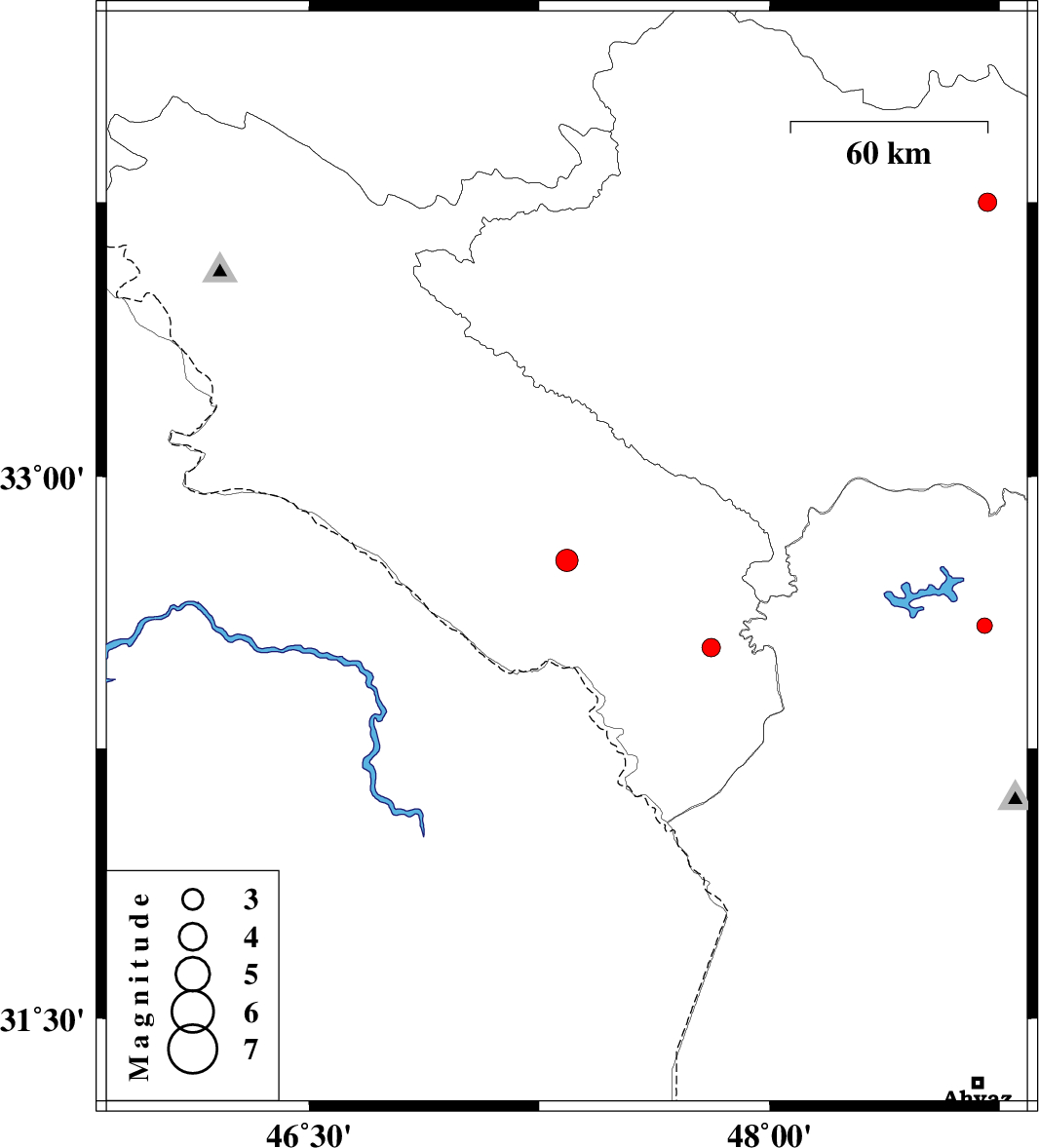 | 2014/12/31 | 22:37:23.0 | 02:07:23.0 | 32.53 | 47.81 | 17 | ML:2.7 | Ilam Province, 52 km West of Andimeshk | ||