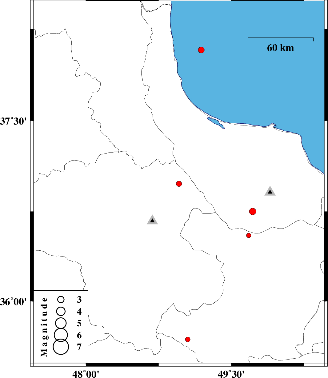 | 2015/01/09 | 12:48:11.8 | 16:18:11.8 | 36.98 | 48.96 | 8 | ML:2.5 | Zanjan Province, 7 km Abbar | ||