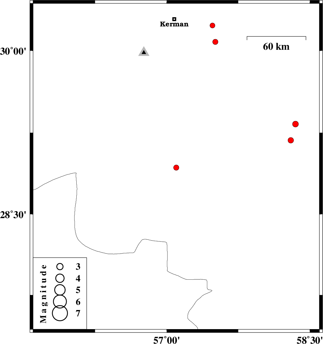 | 2014/12/30 | 10:23:10.5 | 13:53:10.5 | 30.08 | 57.51 | 14 | ML:2.5 | Kerman Province, 48 km South-East of Kerman | ||
