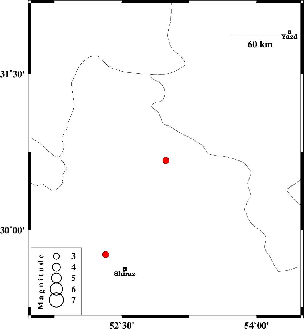 | 2015/01/21 | 13:14:52.7 | 16:44:52.7 | 29.76 | 52.32 | 6 | ML:3.3 | Fars Province, 25 km North-West of Shiraz |