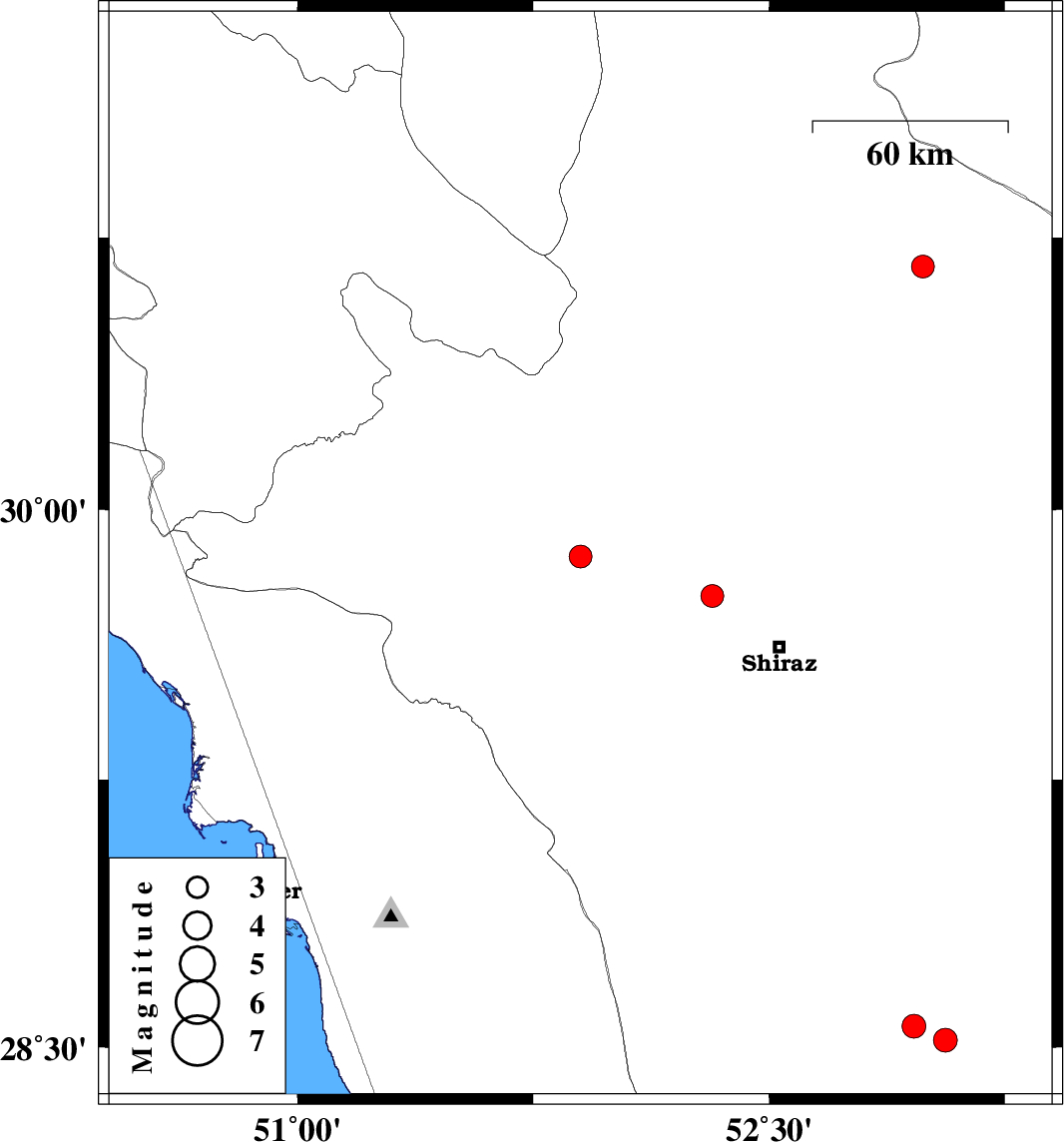| 2015/01/21 | 13:14:52.7 | 16:44:52.7 | 29.76 | 52.32 | 6 | ML:3.3 | Fars Province, 25 km North-West of Shiraz |