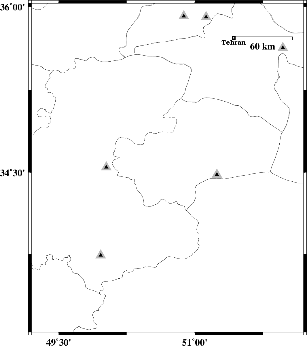 | 2015/01/30 | 13:35:21.7 | 17:05:21.7 | 35.45 | 51.39 | 18 | ML:1.5 | Tehran Province, 18 km South of Rey |
