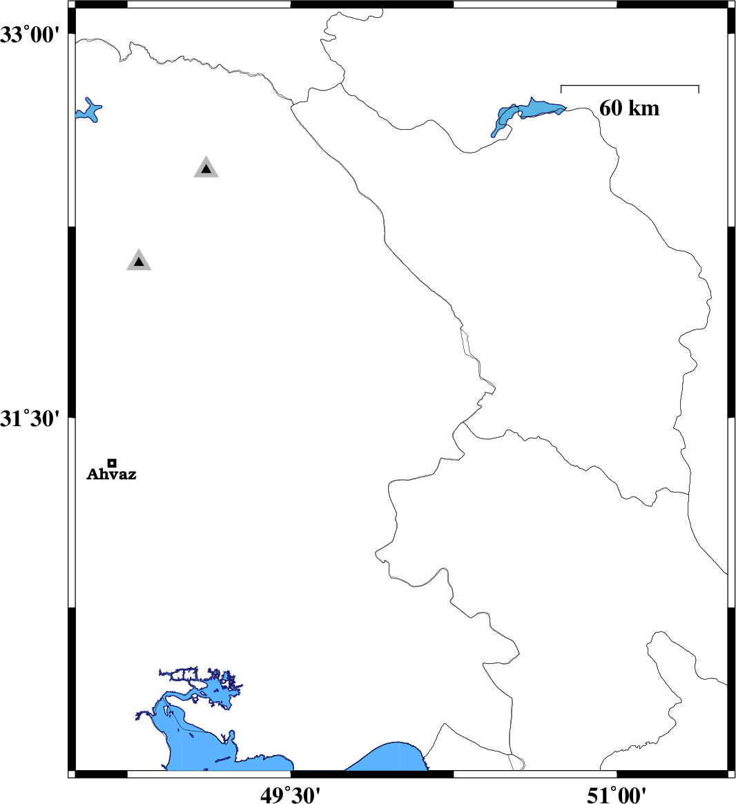 | 2015/02/08 | 19:50:05.7 | 23:20:05.7 | 31.6 | 50.01 | 14 | ML:3.4 | Khoozestan Province, 14 km East of Bagh Malek | ||