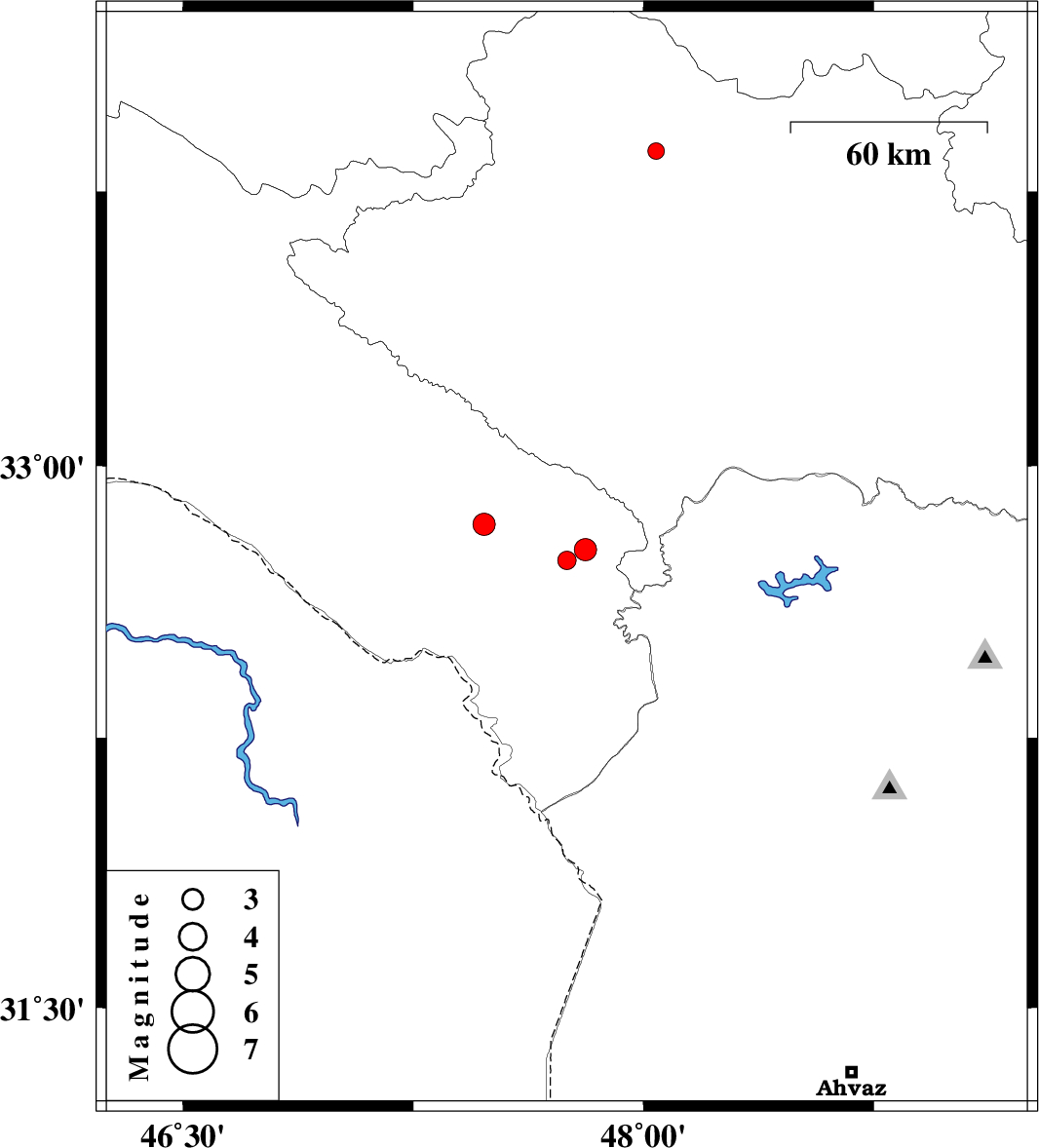 | 2015/02/04 | 01:36:55.9 | 05:06:55.9 | 33.86 | 48.04 | 15 | ML:2.4 | Lorestan Province, 24 km West of Aleshtar |