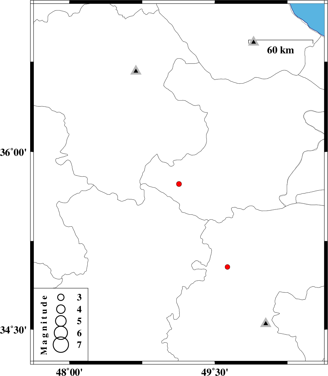 | 2015/02/26 | 02:20:13.2 | 05:50:13.2 | 35.73 | 49.13 | 27 | ML:2.4 | Ghazvin Province, 39 km North of Razan | ||