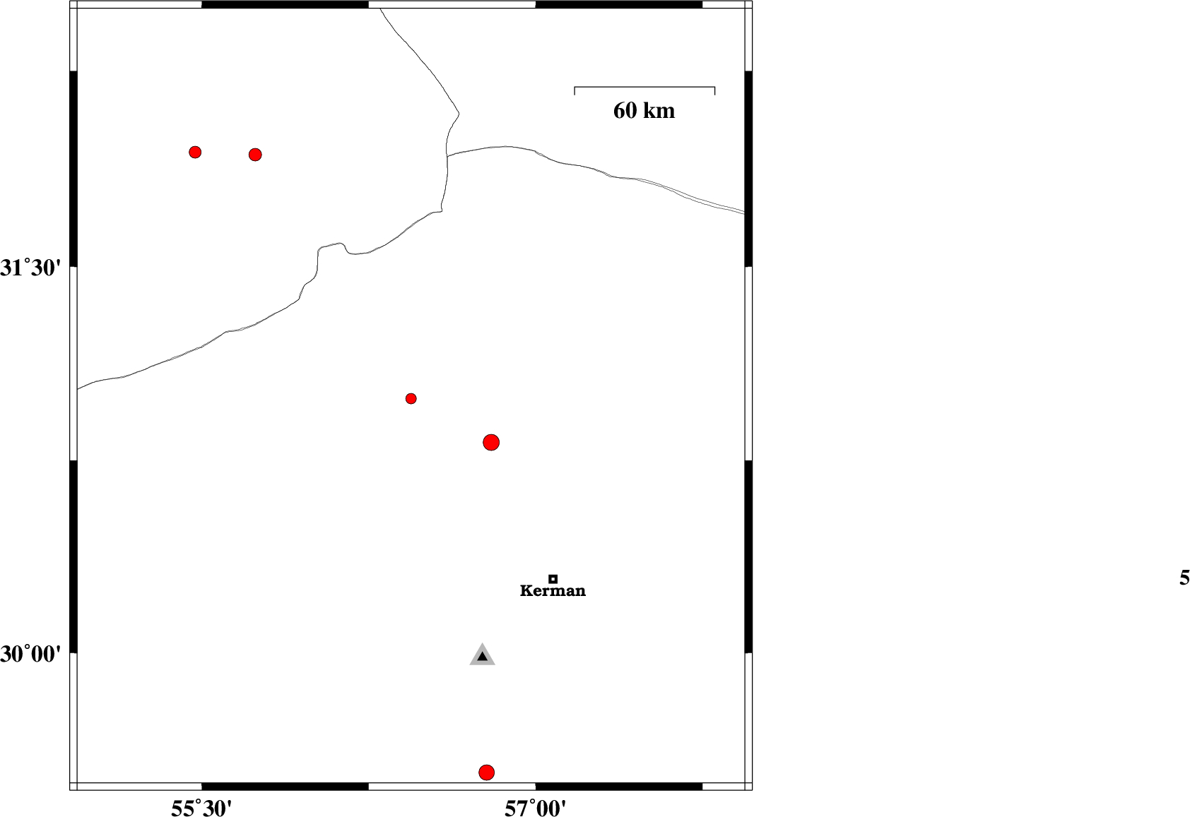 | 2015/03/03 | 10:07:59.0 | 13:37:59.0 | 30.99 | 56.44 | 14 | ML:2.1 | Kerman Province, 23 km North-West of Zarand | ||