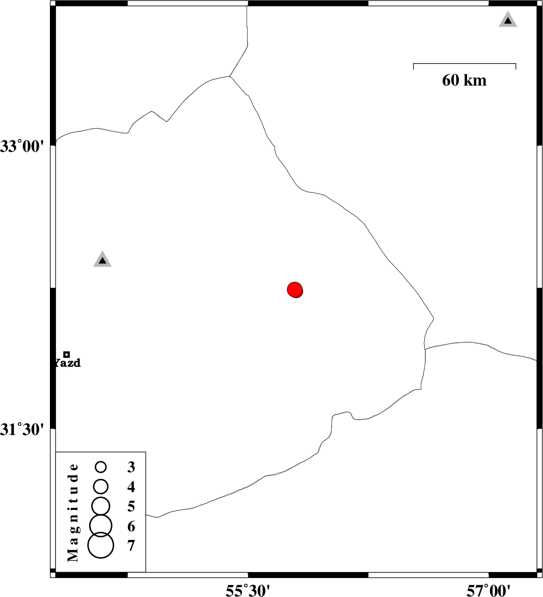 | 2015/03/30 | 07:04:04.3 | 11:34:04.3 | 32.24 | 55.79 | 17 | ML:4.3 | Yazd Province, 80 km North-East of Bafq | ||