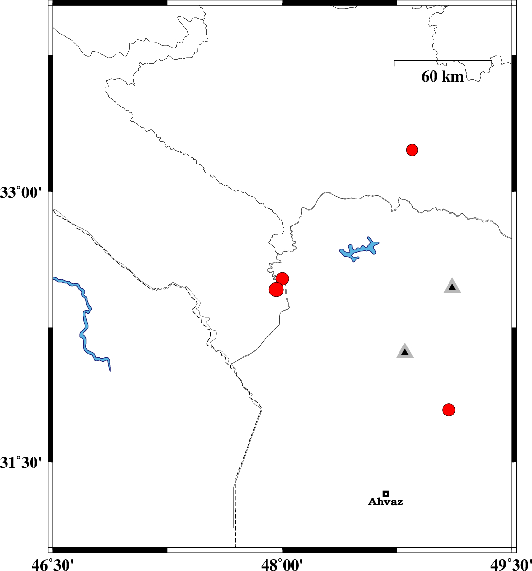 | 2015/03/25 | 11:05:59.6 | 15:35:59.6 | 31.79 | 49.09 | 14 | ML:3.6 | Khoozestan Province, 26 km South-West of Masjed Soleyman |