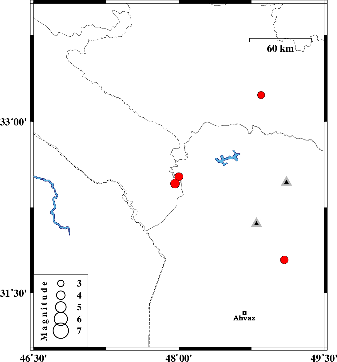 | 2015/03/30 | 11:47:32.9 | 16:17:32.9 | 32.52 | 48 | 14 | ML:3.8 | Ilam Province, 34 km West of Andimeshk | ||