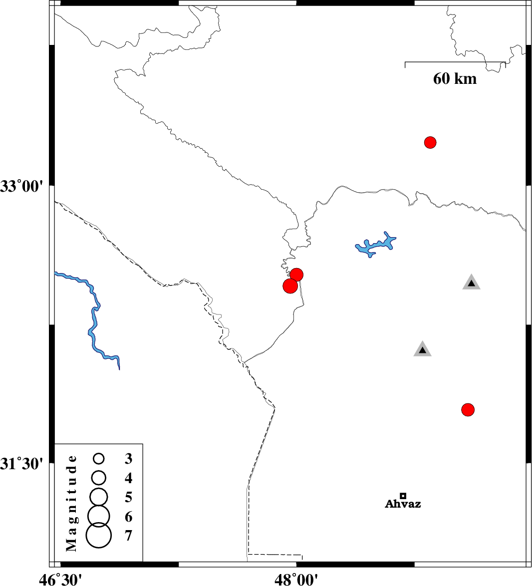 | 2015/03/25 | 11:05:59.6 | 15:35:59.6 | 31.79 | 49.09 | 14 | ML:3.6 | Khoozestan Province, 26 km South-West of Masjed Soleyman |