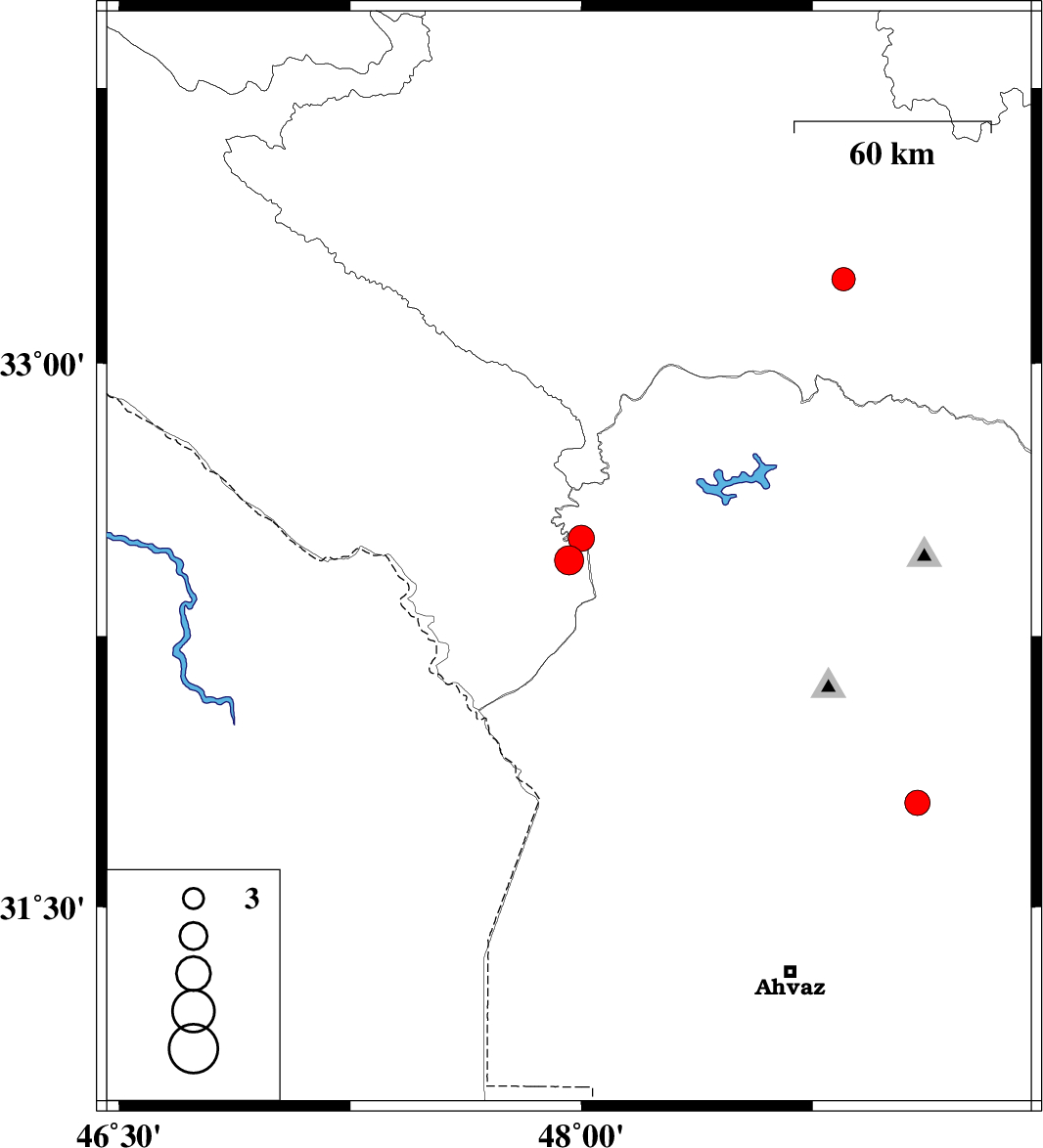 | 2015/03/30 | 11:47:32.9 | 16:17:32.9 | 32.52 | 48 | 14 | ML:3.8 | Ilam Province, 34 km West of Andimeshk | ||