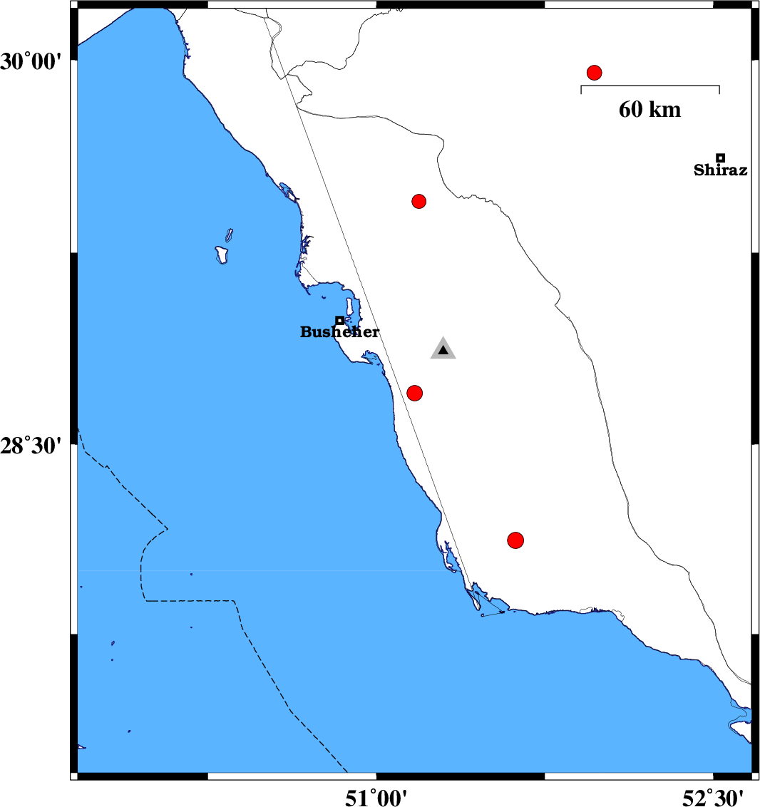 | 2015/03/09 | 23:19:24.9 | 02:49:24.9 | 29.45 | 51.19 | 14 | ML:2.8 | Bushehr Province, 21 km North of Borazjan |