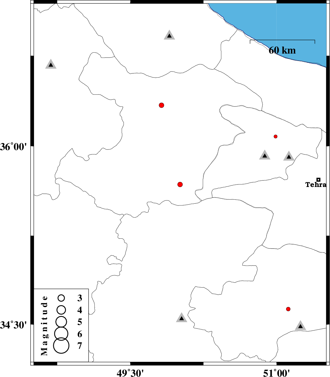| 2015/03/16 | 08:26:03.8 | 11:56:03.8 | 36.34 | 49.82 | 18 | ML:2.3 | Ghazvin Province, 18 km West of Qazvin |