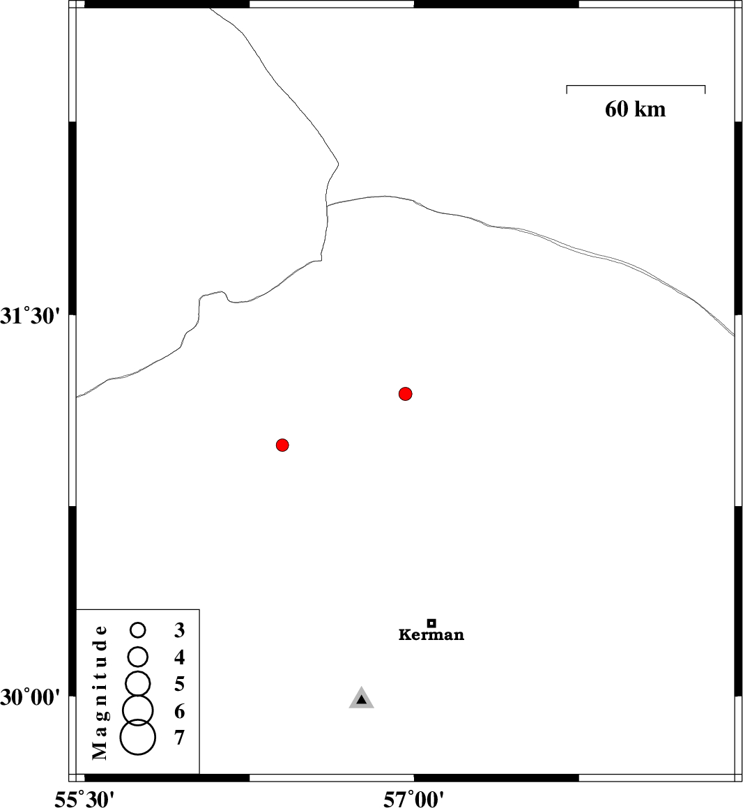 | 2015/04/11 | 13:29:03.3 | 17:59:03.3 | 31.19 | 56.96 | 15 | ML:2.7 | Kerman Province, 16 km East of Ravar | ||