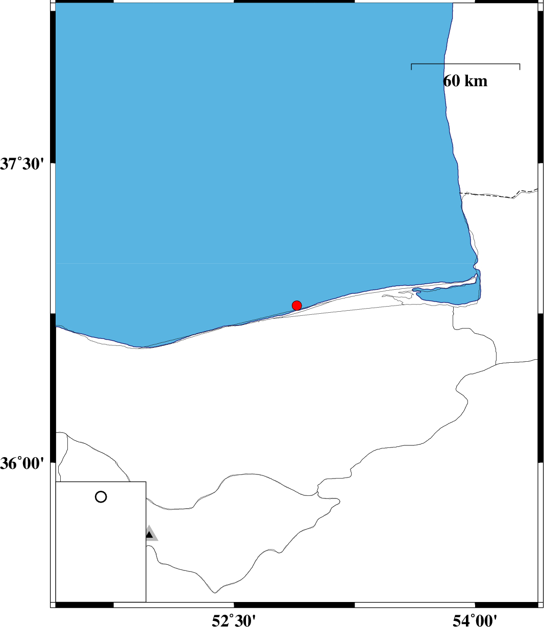 | 2015/04/17 | 23:21:36.9 | 03:51:36.9 | 36.79 | 52.89 | 14 | ML:2.7 | Caspian Sea, 17 km North of Joybar | ||