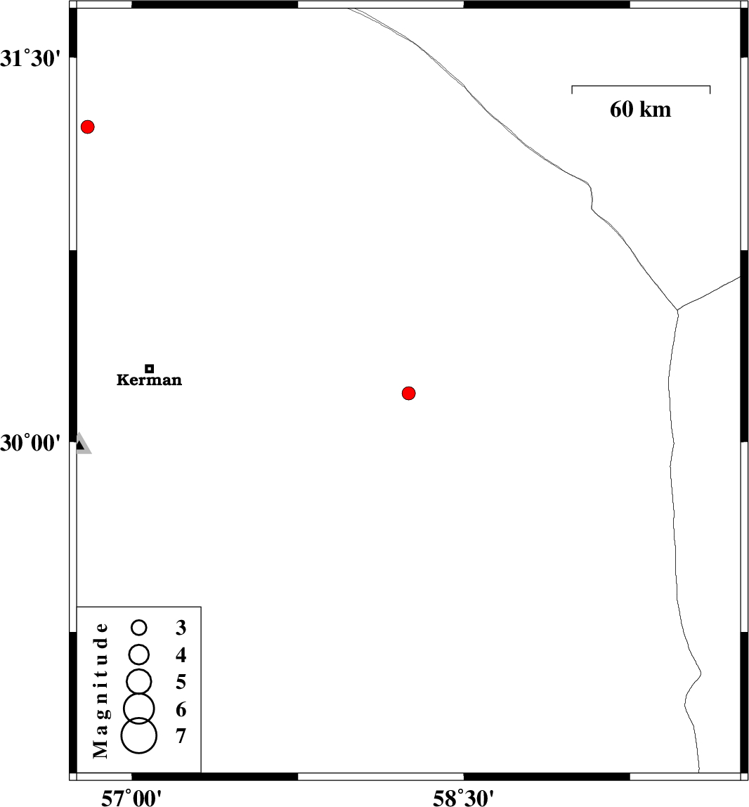 | 2015/04/16 | 02:50:07.0 | 07:20:07.0 | 31.23 | 56.8 | 14 | ML:2.7 | Kerman Province, 4 km Ravar |
