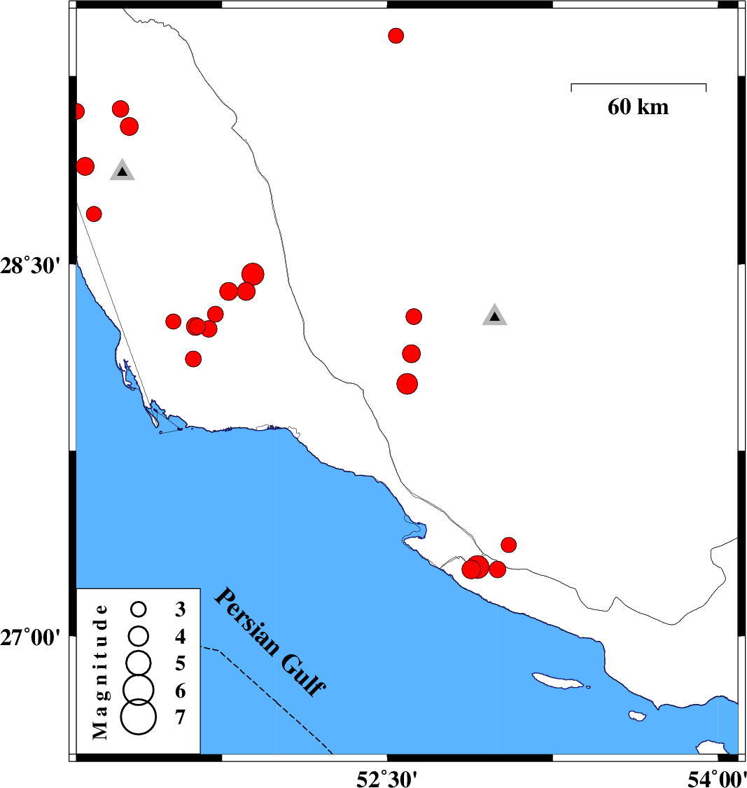 |  | 2015/04/05 | 05:03:57.7 | 09:33:57.7 | 29.12 | 51.29 | 7 | ML:3.4 | Bushehr Province, 18 km South of Borazjan |  |