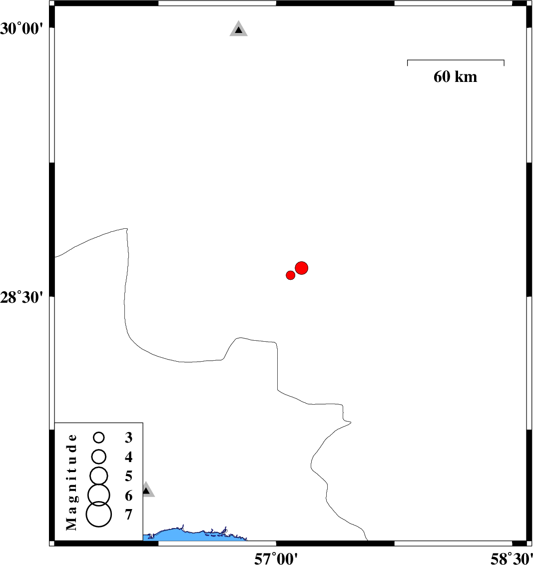 | 2015/04/20 | 20:37:36.2 | 01:07:36.2 | 28.66 | 57.16 | 14 | ML:3.6 | Kerman Province, 57 km West of Jiroft |