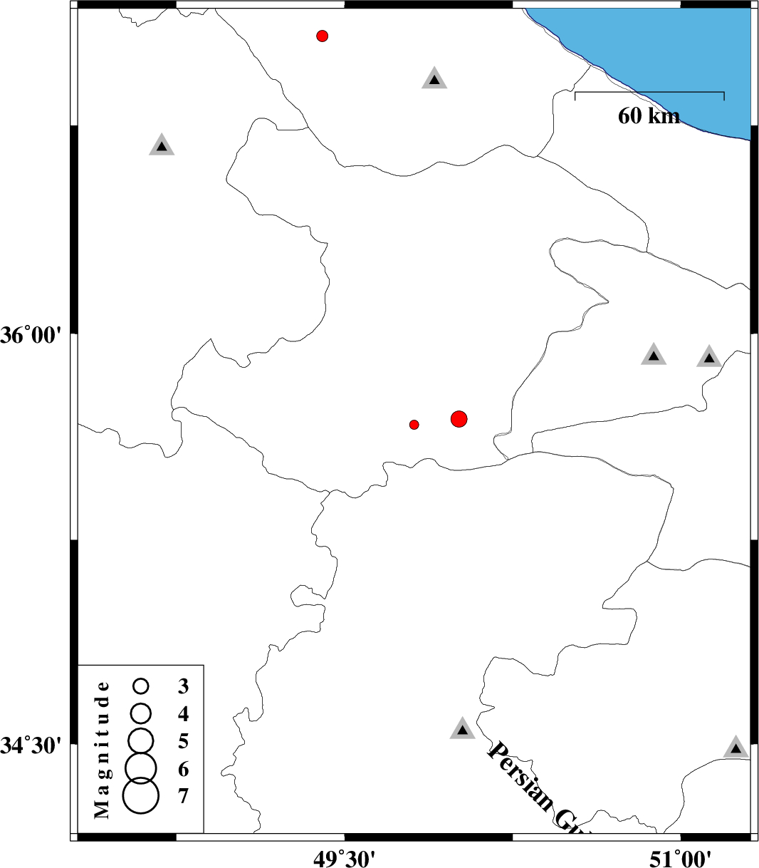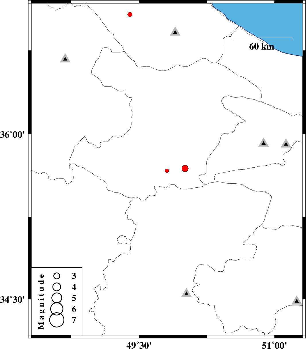 | 2015/04/24 | 03:24:00.5 | 07:54:00.5 | 35.67 | 49.81 | 14 | ML:1.9 | Ghazvin Province, 26 km South-West of Buinzara | ||