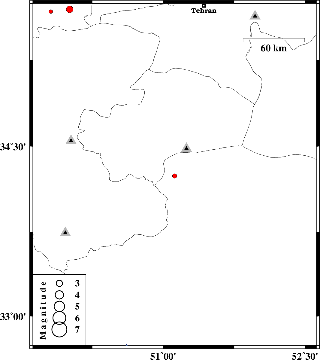 | 2015/04/24 | 03:24:00.5 | 07:54:00.5 | 35.67 | 49.81 | 14 | ML:1.9 | Ghazvin Province, 26 km South-West of Buinzara | ||