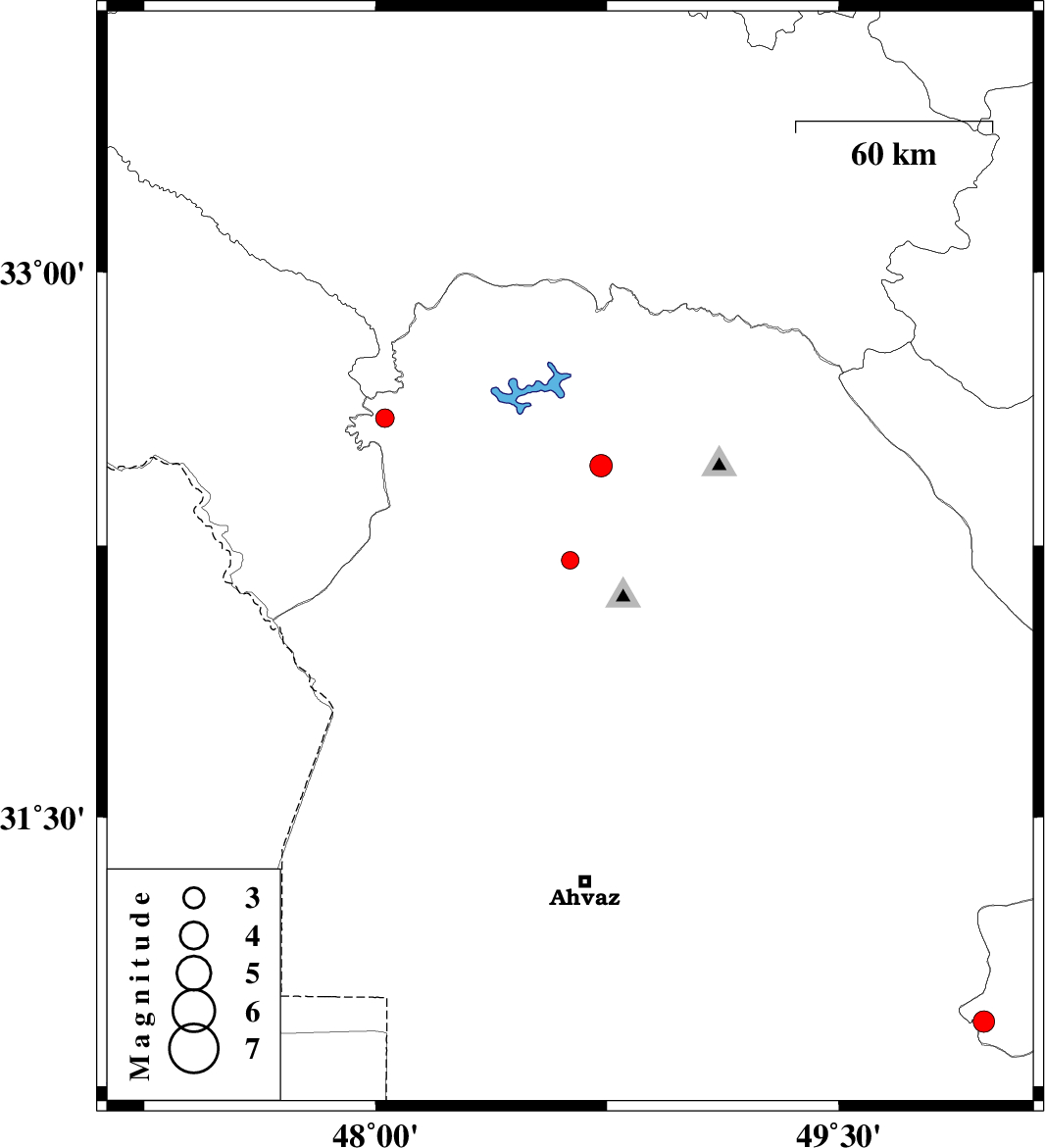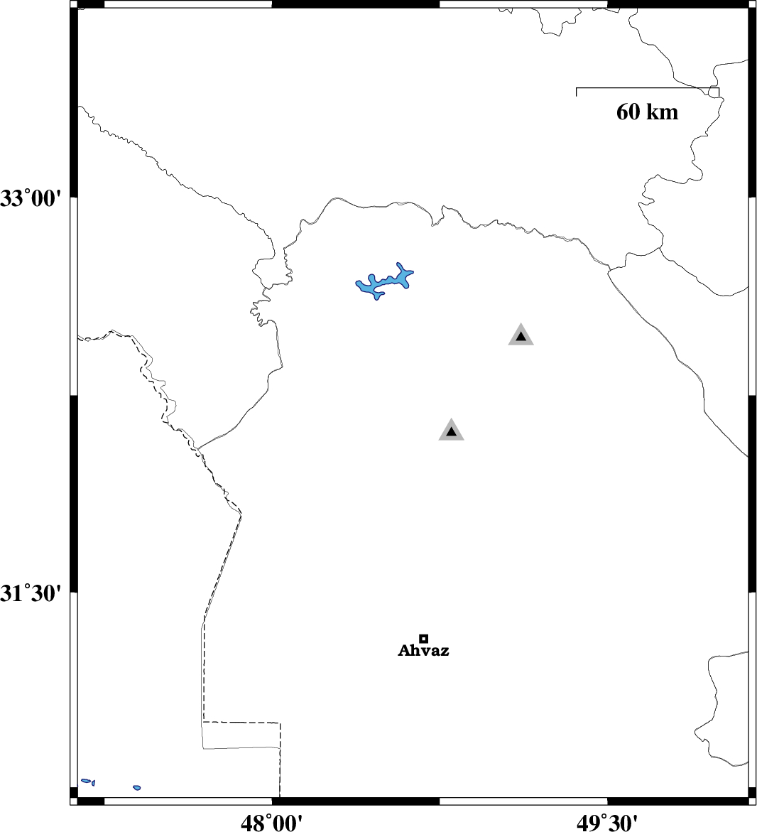 | 2015/04/30 | 00:13:02.1 | 04:43:02.1 | 32.47 | 48.73 | 14 | ML:3.3 | Khoozestan Province, 35 km East of Andimeshk | ||