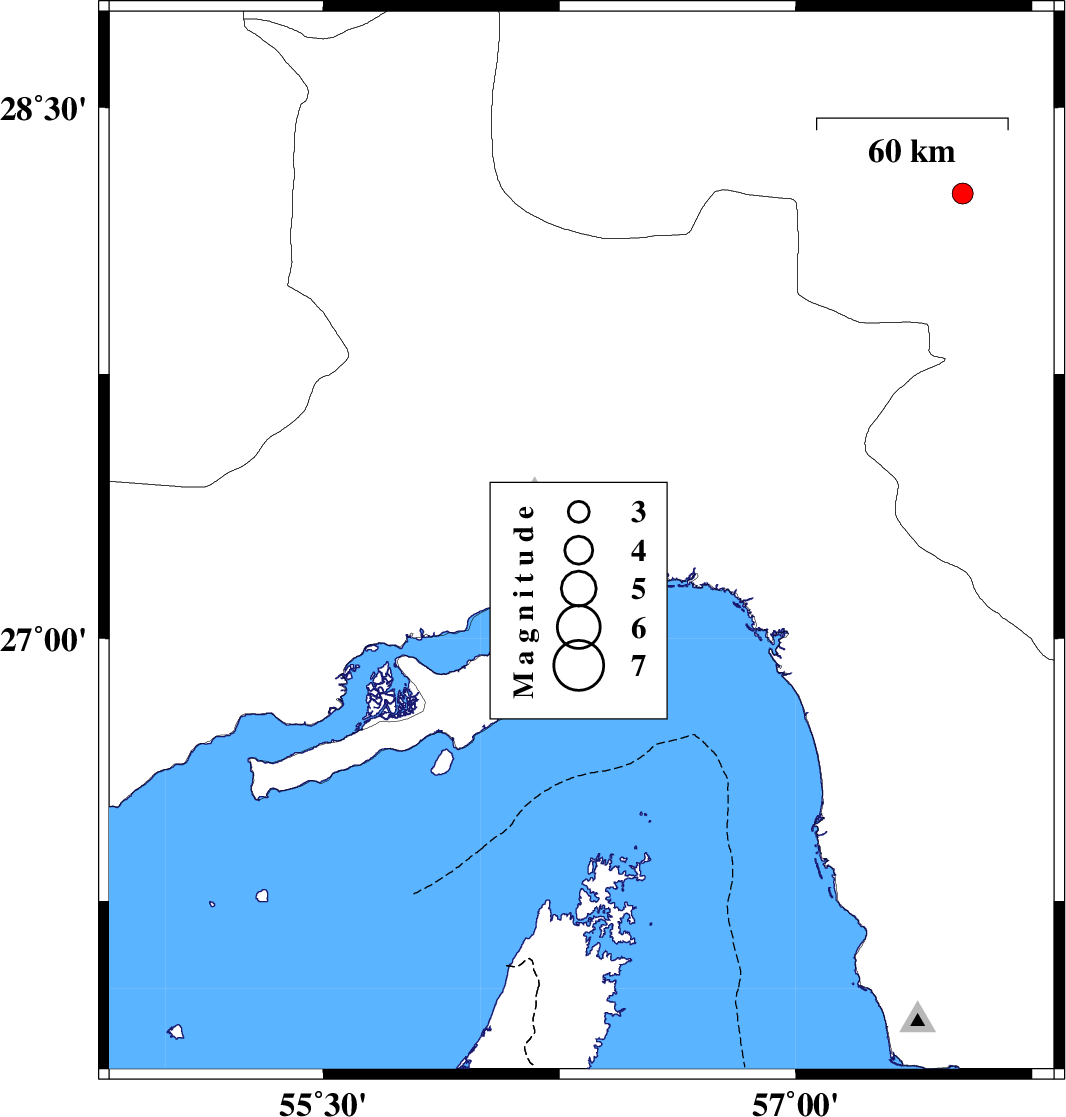 | 2015/05/15 | 16:45:06.7 | 21:15:06.7 | 27.27 | 56.32 | 20 | ML:3 | Hormozgan Province, 10 km Bandar-e abbas | ||
