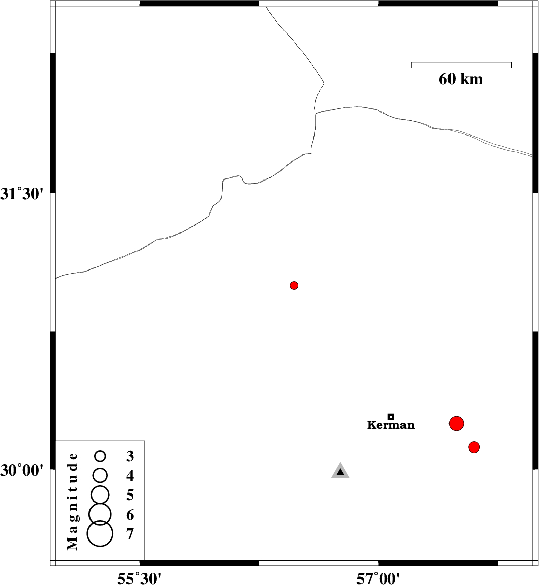 | 2015/05/25 | 16:30:54.4 | 21:00:54.4 | 30.12 | 57.6 | 14 | ML:3.1 | Kerman Province, 53 km South-East of Kerman | ||