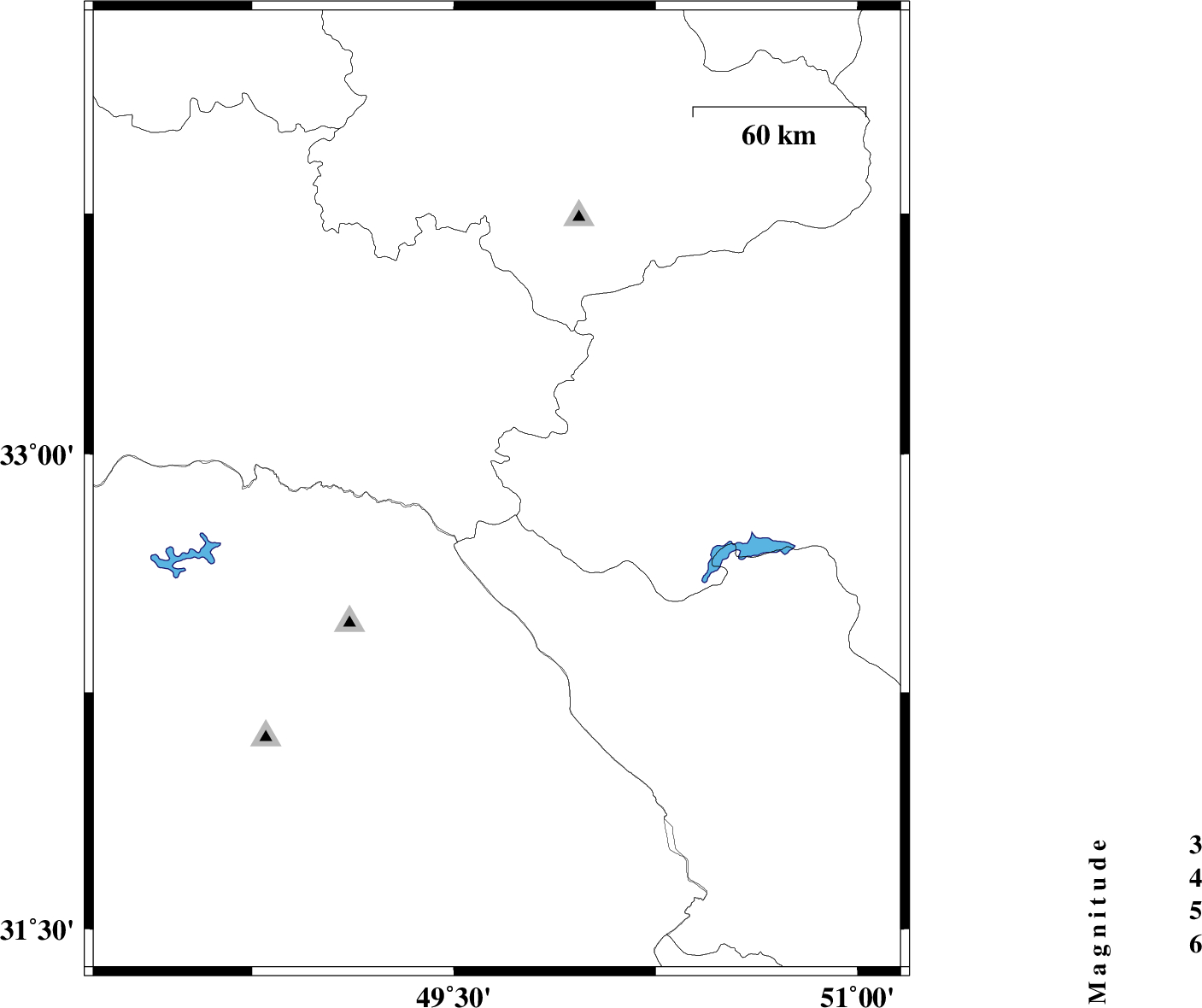 | 2015/05/30 | 10:46:16.9 | 15:16:16.9 | 32.88 | 49.66 | 17 | ML:3.1 | Lorestan Province, 42 km West of Fereydunshahr | ||
