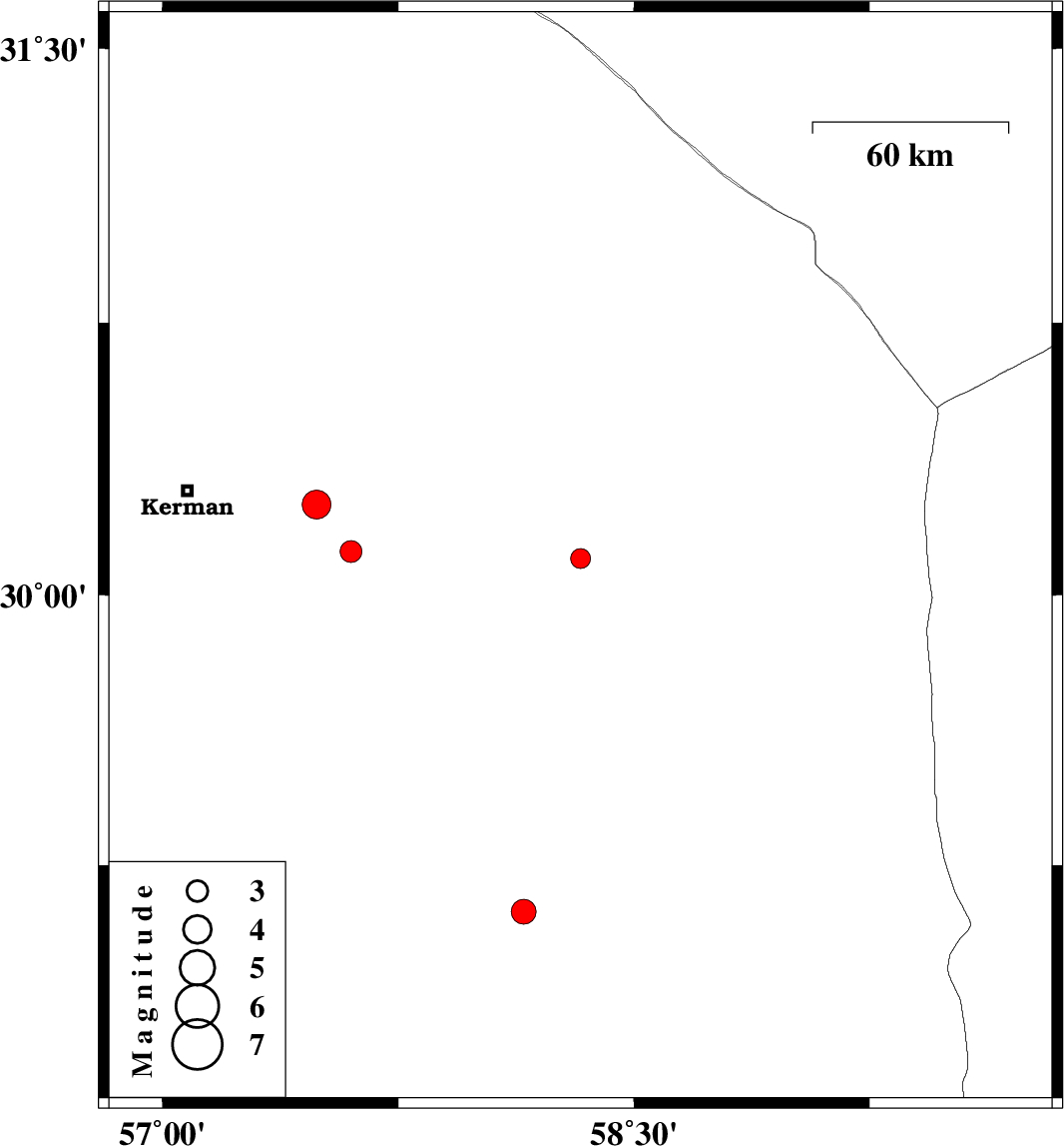 | 2015/05/25 | 16:30:54.4 | 21:00:54.4 | 30.12 | 57.6 | 14 | ML:3.1 | Kerman Province, 53 km South-East of Kerman | ||