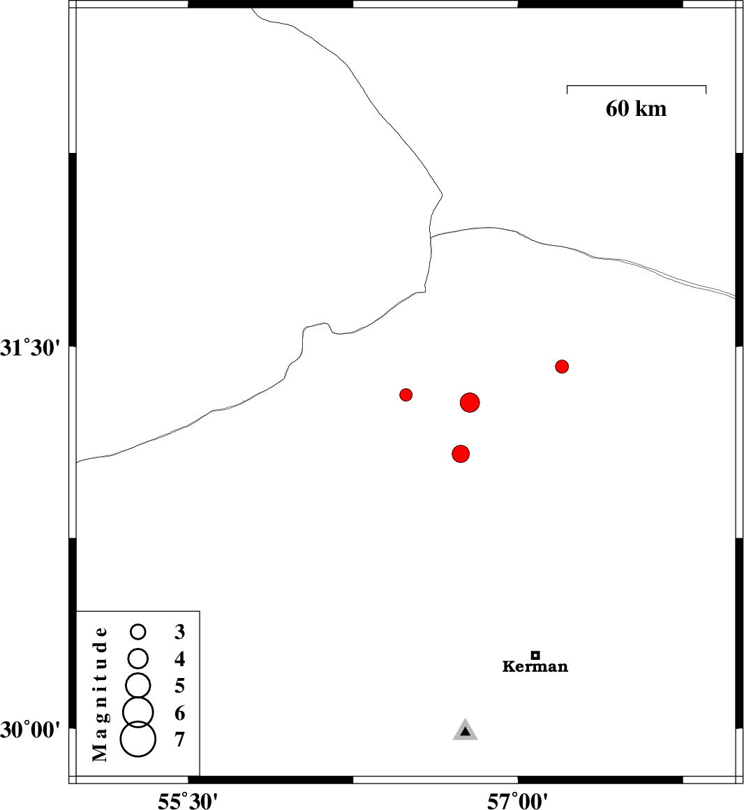 | 2015/05/29 | 07:23:06.4 | 11:53:06.4 | 31.28 | 56.78 | 17 | ML:3.9 | Kerman Province, 4 km Ravar | ||