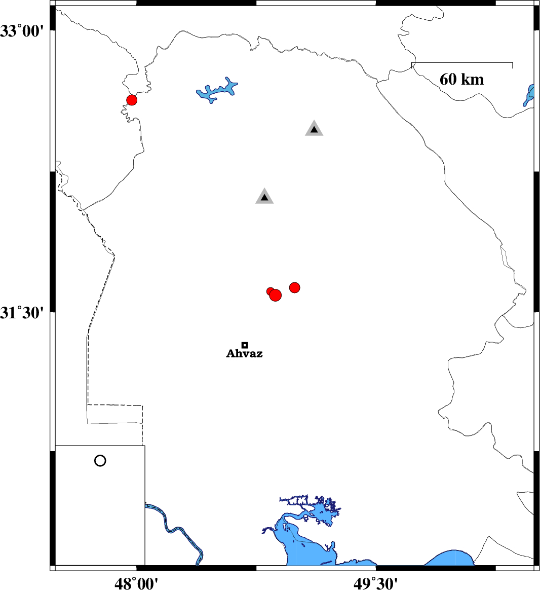 | 2015/06/02 | 22:46:53.4 | 03:16:53.4 | 31.61 | 48.84 | 14 | ML:2.3 | Khoozestan Province, 48 km South of Shushtar |