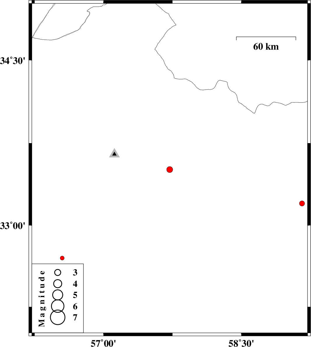 | 2015/06/23 | 06:35:37.5 | 11:05:37.5 | 33.2 | 59.16 | 14 | ML:2.6 | Khorasan(south) Province, 34 km North of Birjand | ||