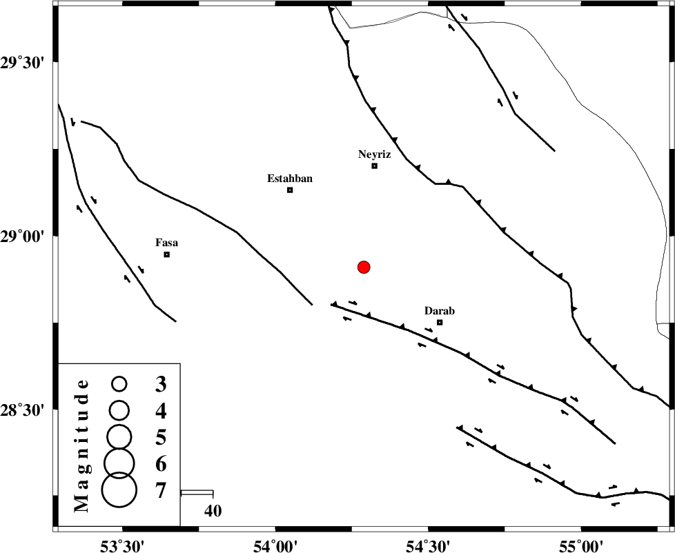 BAKHTEGAN_F (Length: 94 km) , Distance to epicenter: 20 km