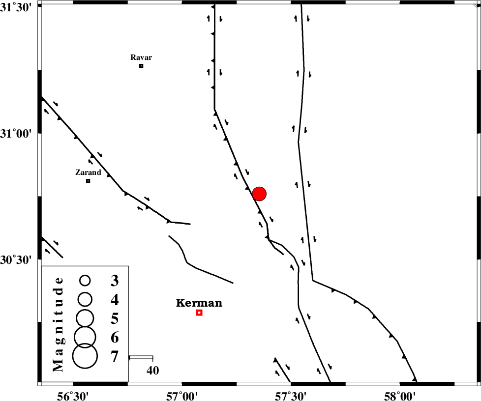 GOLBAF_SIRCH_F (Length: 114 km) , Distance to epicenter: 21 km | |