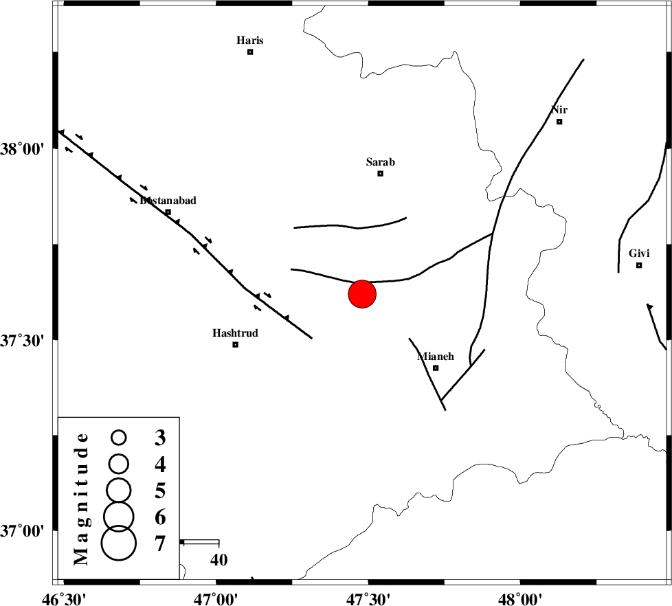 | N_TABRIZ_F1 (Length: 222 km) , Distance to epicenter: 19 km | |